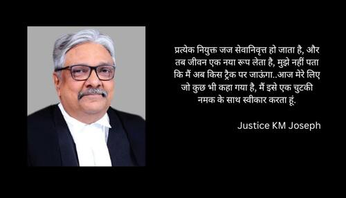 Justice KM Joseph ने रिटायरमेंट बाद नियुक्ति और जीवन को लेकर कहा कि प्रत्येक नियुक्त जज सेवानिवृत्त हो जाता है और जीवन एक नया रूप लेता है, मुझे नहीं पता कि मैं अब किस ट्रैक पर जाऊंगा..आज मेरे लिए जो कुछ भी कहा गया है, मैं इसे एक चुटकी नमक के साथ लेता हूं.
