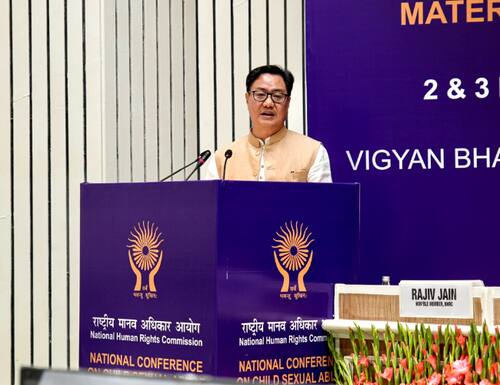 दिल्ली स्थित विज्ञान भवन में राष्ट्रीय मानवाधिकार आयोग (NHRC) द्वारा ‘बाल यौन शोषण सामग्री’ विषय पर आयोजित राष्ट्रीय सम्मेलन में कानून मंत्री ने कहा, ‘हमें कानूनी प्रावधानों के परे जाकर देखना होगा. महिलाओं तथा बच्चों की सुरक्षा सुनिश्चित करने के लिए समाज को एकजुट होना चाहिए." रीजीजू ने बाल यौन शोषण के अपराध को सबसे गंभीर और परेशान करने वाली चुनौतियों में से एक करार दिया.