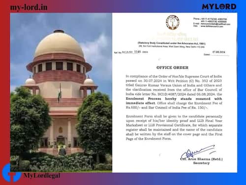 Delhi Bar Council Open Registration: लास्ट ईयर के लॉ ग्रेजुएट और दिल्ली बार काउंसिल में एनरोलमेंट करवाने वालों के बड़ी खुशखबरी सामने आई है. दिल्ली बार काउंसिल ने फ्रेशर लॉ ग्रेजुएट व इच्छुक लोगों के लिए बार में एनरोलमेंट की प्रोसेस शुरू कर दी है. एनरोलमेंट प्रक्रिया पर हाल ही में सुप्रीम कोर्ट ने गौरव कुमार बनाम भारत संघ एवं अन्य मामले में वकीलों से एनरोलमेंट फी एडवोकेच एक्ट द्वारा तय नियमों के अनुसार ही लेने के निर्देश दिए है.