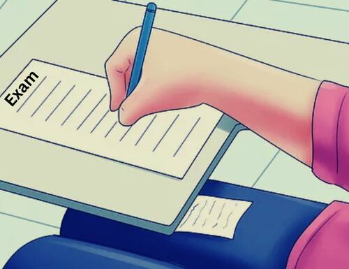 — परीक्षा के दौरान लिखित नोट्स या रिकॉर्डिंग की मदद लेना या मदद करना.